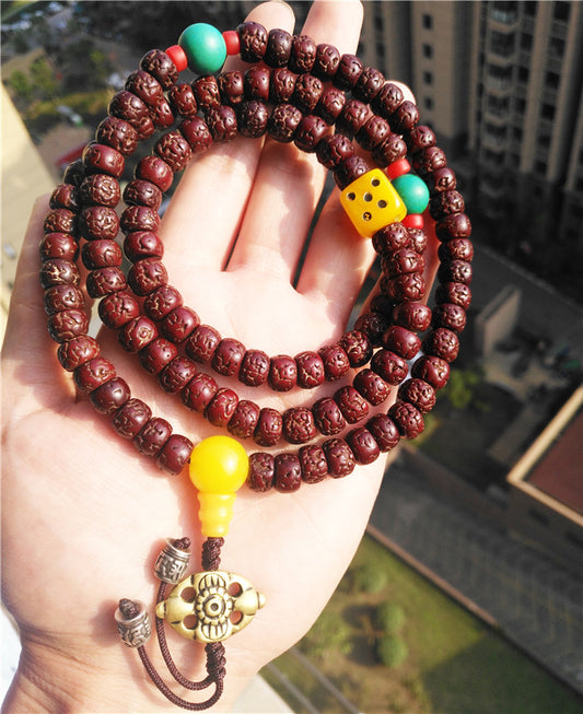 Himalayas Old Antique Rudraksha Bodhi Seeds Mala Prayer Beads 108 Rosary Bracelet Tibet