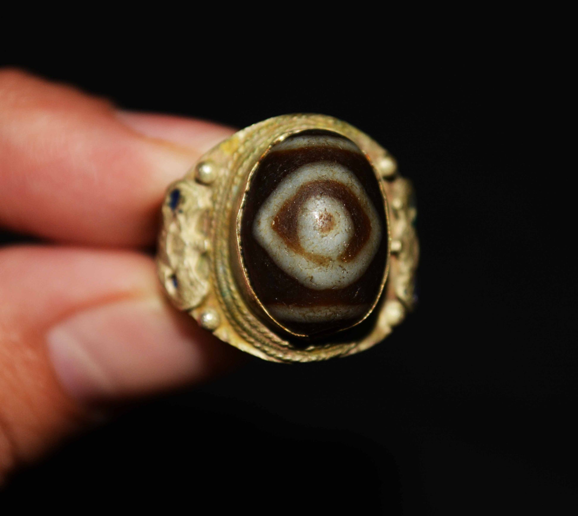 Genuine Tibetan Ancient One Two Eyes Dzi Bead Ring Amulet Himalaya Old Antique Real Agate Nepal Buddha's Eye Pure Gzi Talisman
