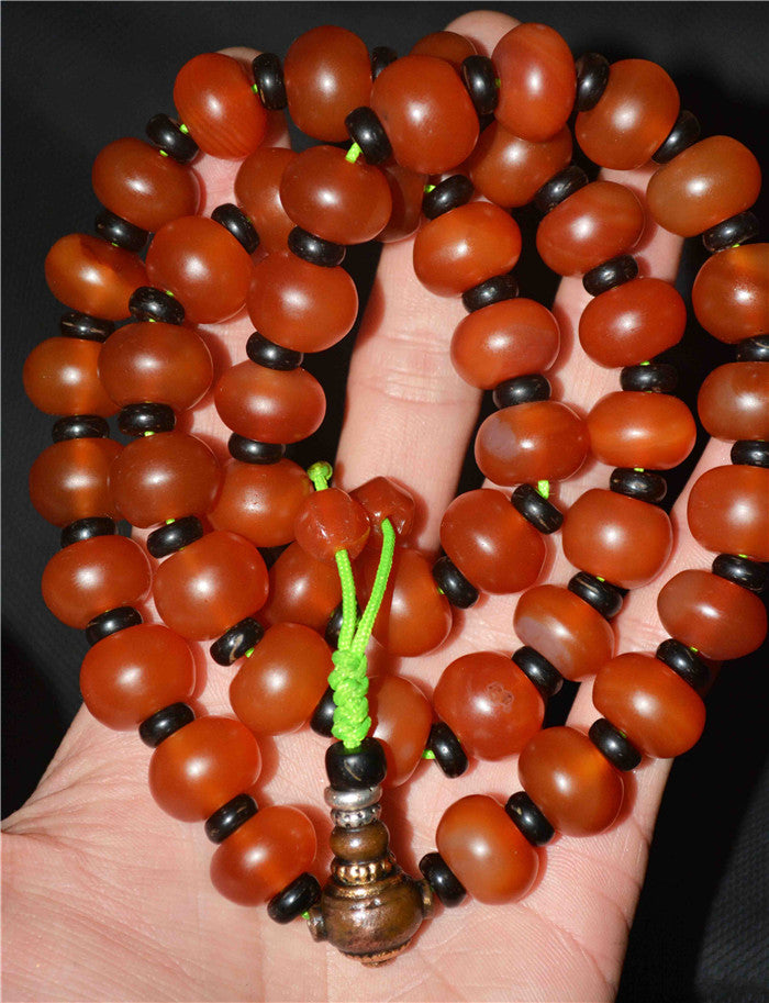 Himalaya Old Antique Real Pema Raka Mala Prayer Beads Red Agate Nanhong Carnelian Rosary Bracelet