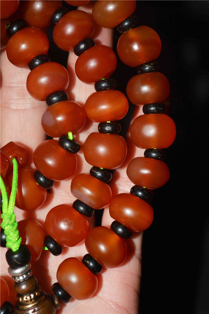 西藏老南红佛珠手串玛瑙算盘珠念珠喜马拉雅藏传MRX: This is a genuine tibet old antique natural red pema raka carnelian mala prayer beads, nanhong pema raka is the best and highest quality agate in “Agate Family”.