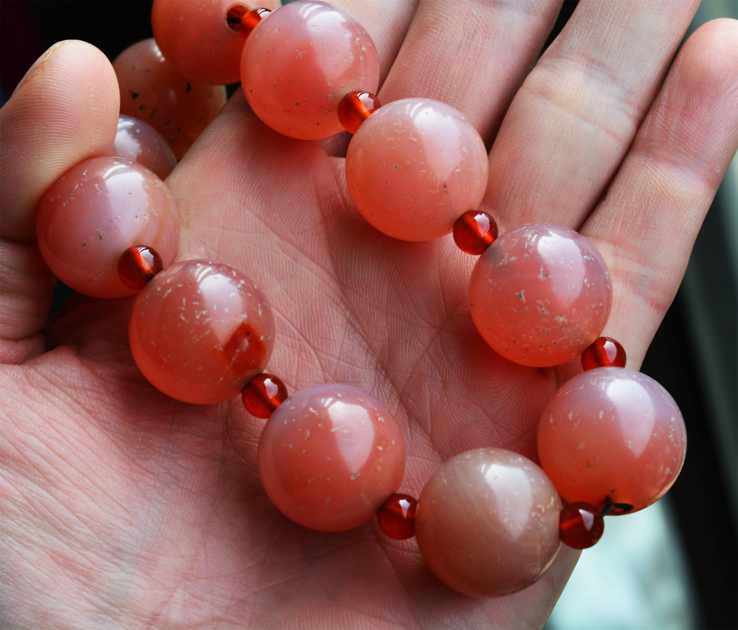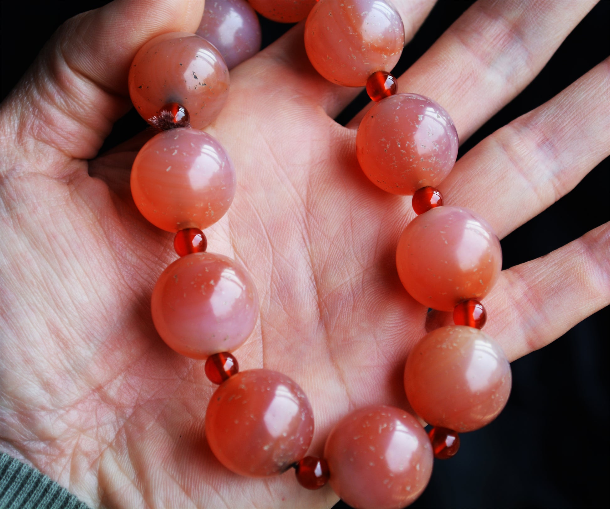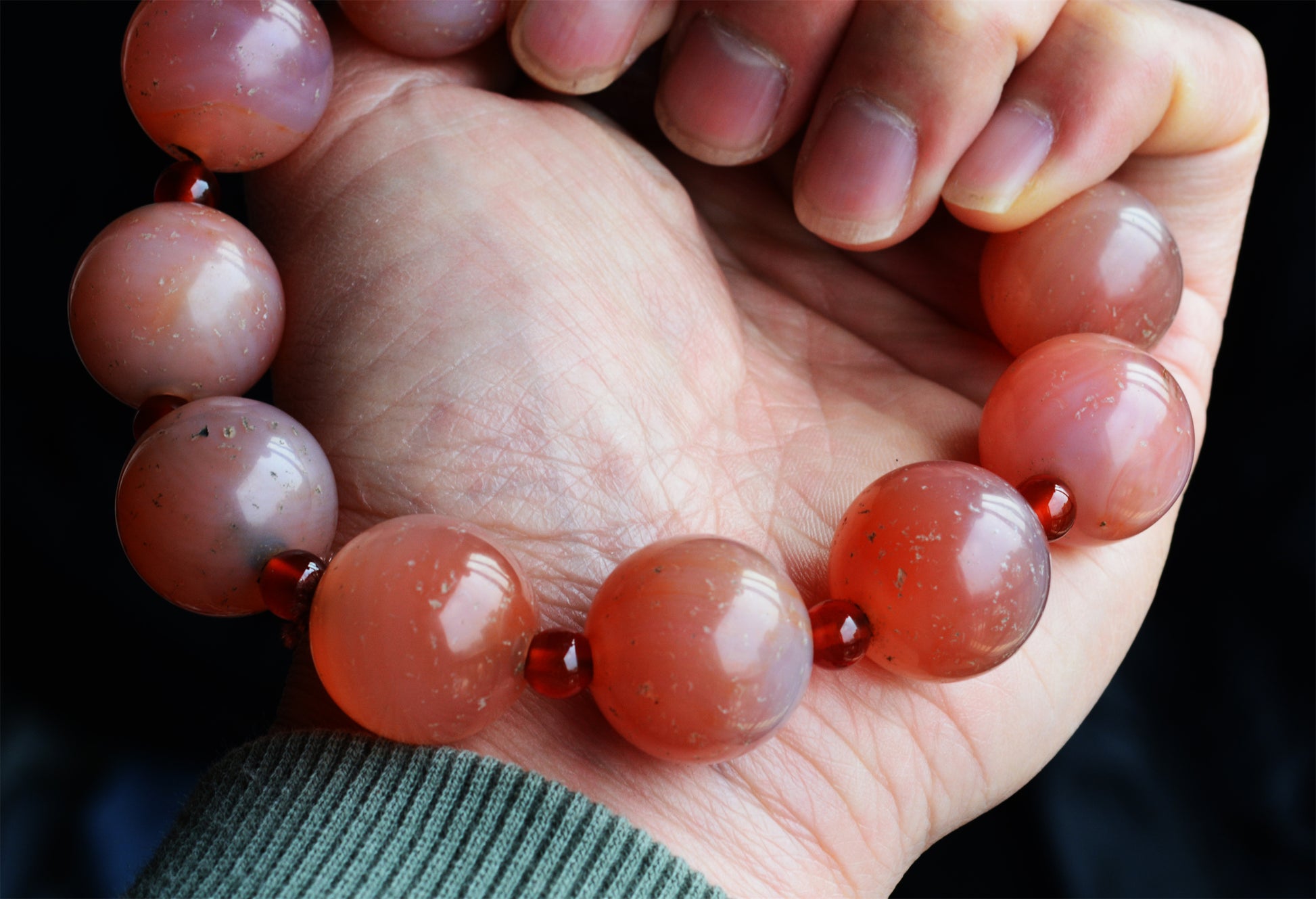西藏老南红手串念珠玛瑙佛珠喜马拉雅藏传MRX: This is a genuine tibetan old antique natural red nanhong pema raka carnelian bracelet mala prayer beads, himalayan nanhong pema raka is the best and highest quality agate in “Agate Family”.