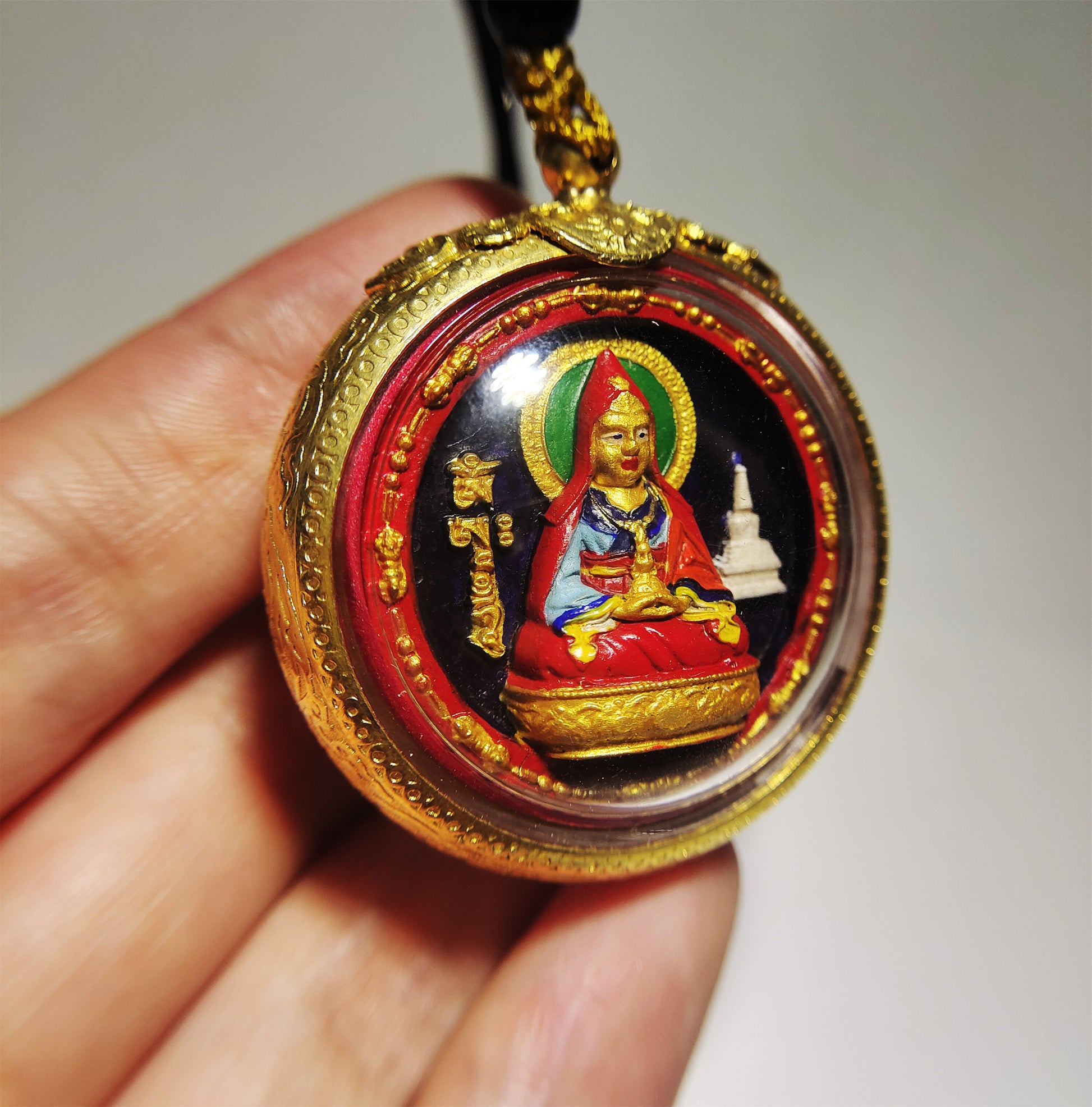 Himalayan Antique Red Lama Tsa Tsa Gau Prayer Box Pendant Ghau Niche Shrine Tibetan Guru Rinpoche Amulet Genuine Tsa Tsa Talisman