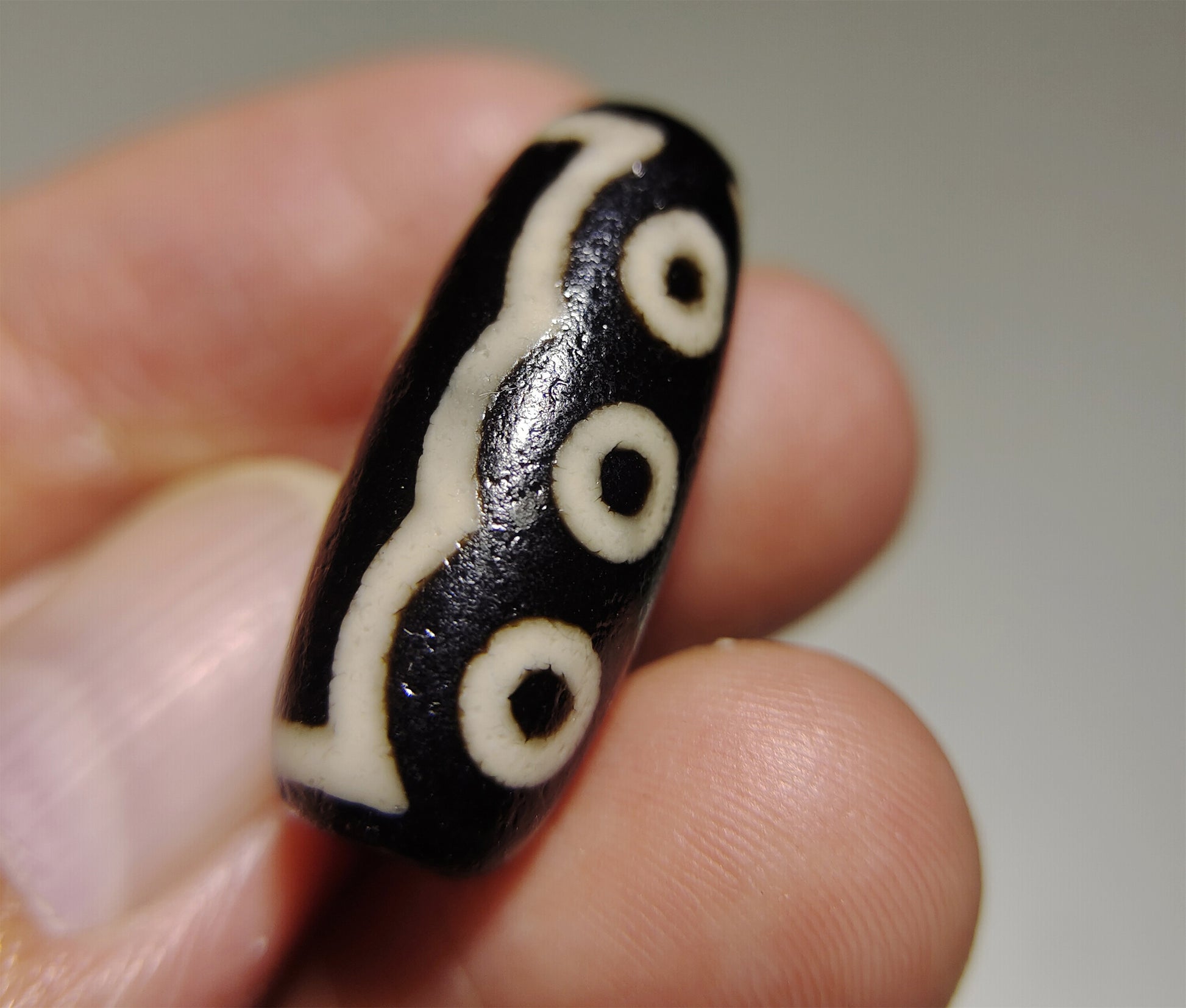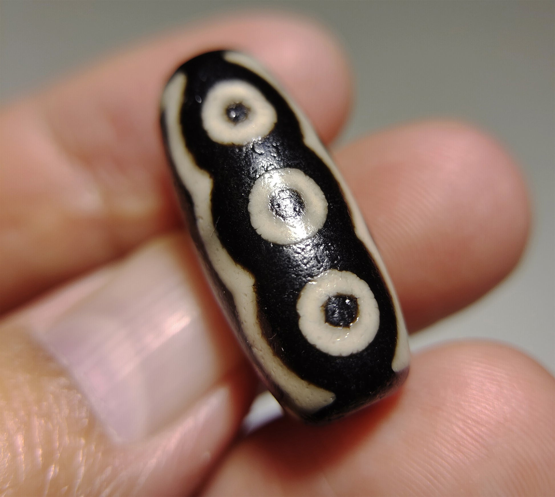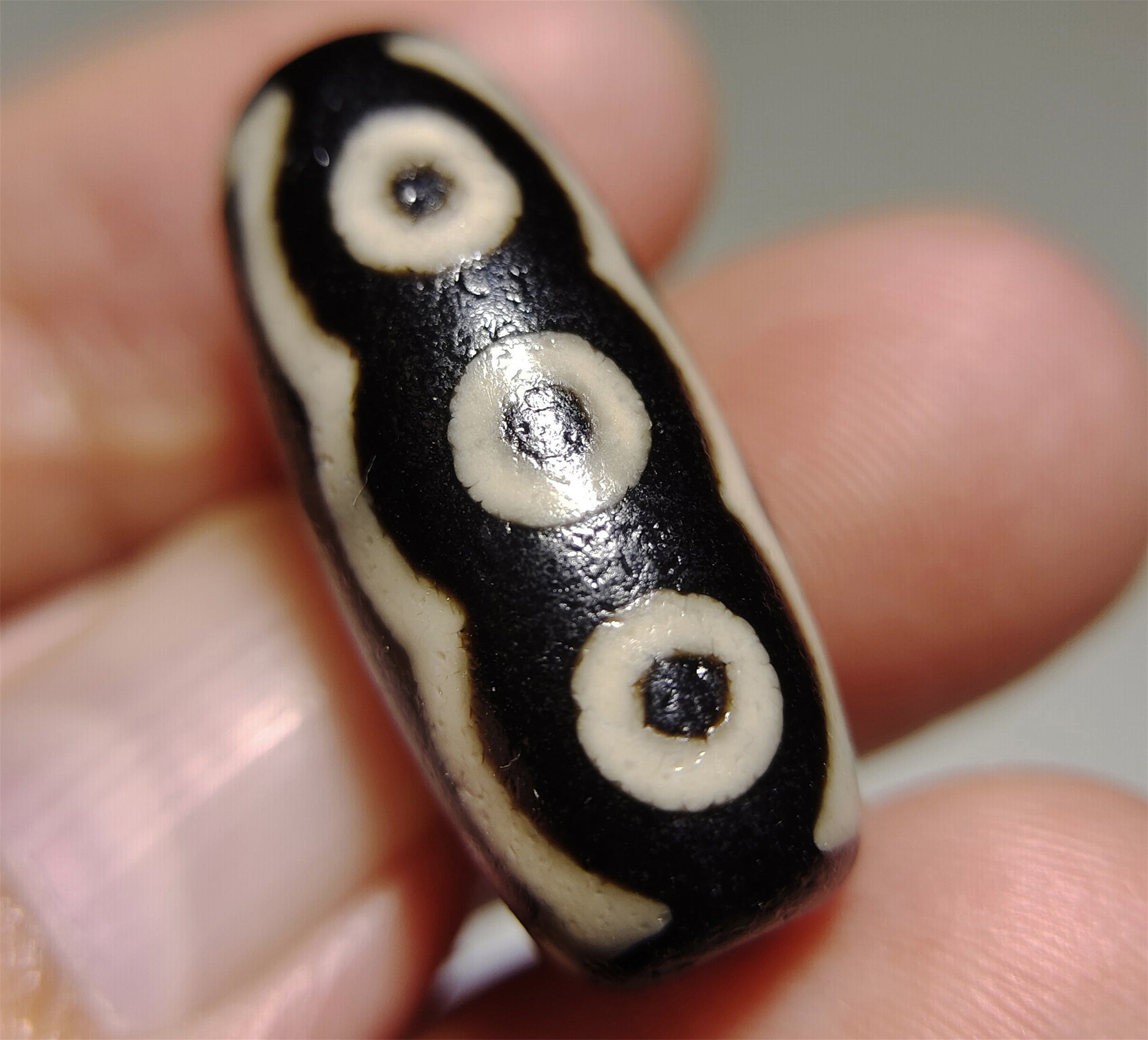 MRX: 西藏千年至纯五眼老天珠吊坠挂件 This is an old ancient genuine himalaya five eyed dzi bead talisman from tibet, 5 eyes symbol, +2000 years old, guaranteed 100% real old ancient himalayan agate dzi bead, from the bead surface you can easily find it is full of waxy patina and age signs due to wearing from generation to generation, authenticity guaranteed, can wear as a necklace pendant or a bracelet, dzi bead is always believed to be the most valuable and powerful energy amulet in tibet ( even worldwide ) since ancient time, this bead measures 27mm*12mm, in tibet culture dzi bead is believed to be the best talisman that can bless and protect its owner, each item is only ONE piece, so what you see will be what you received