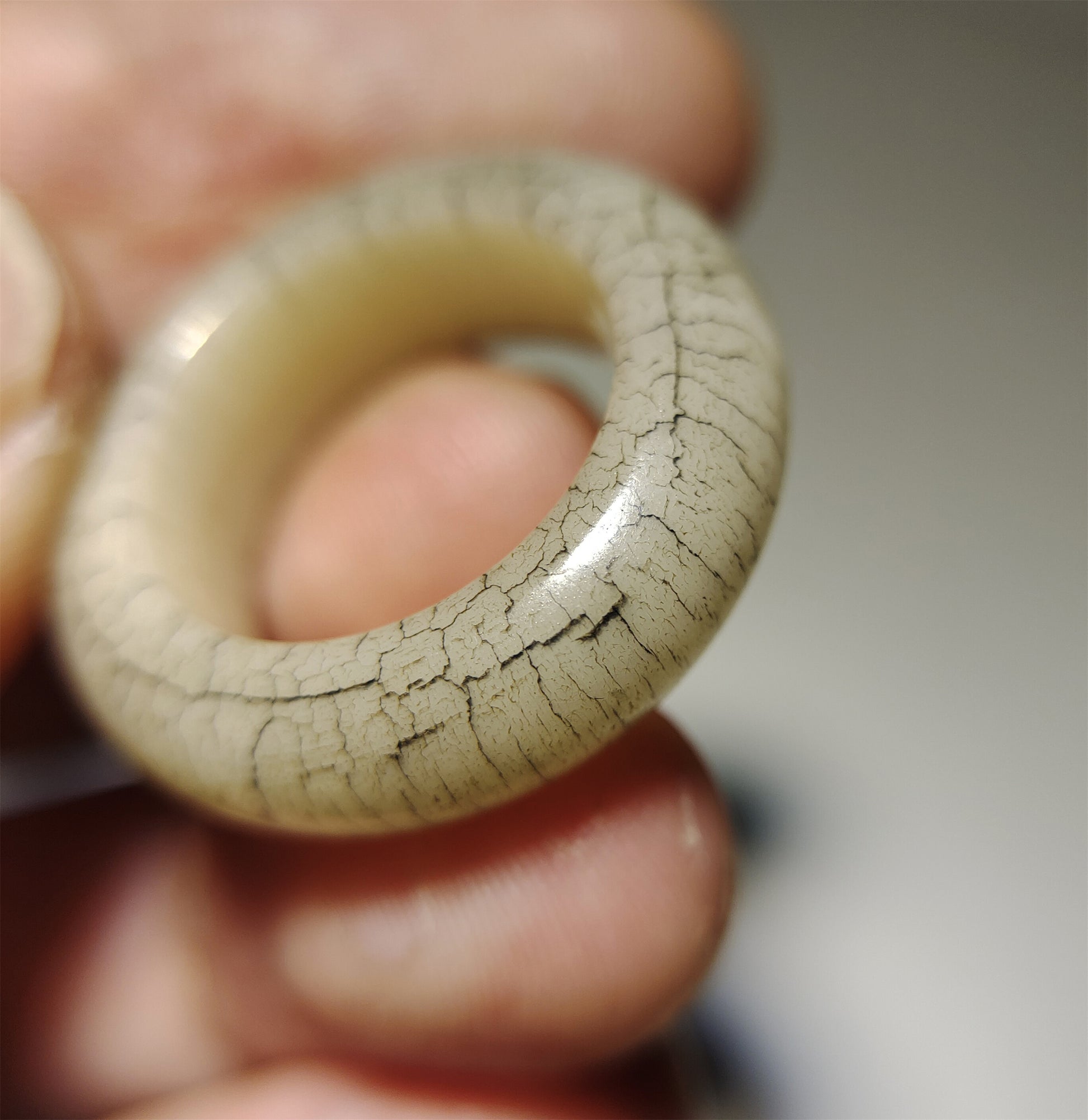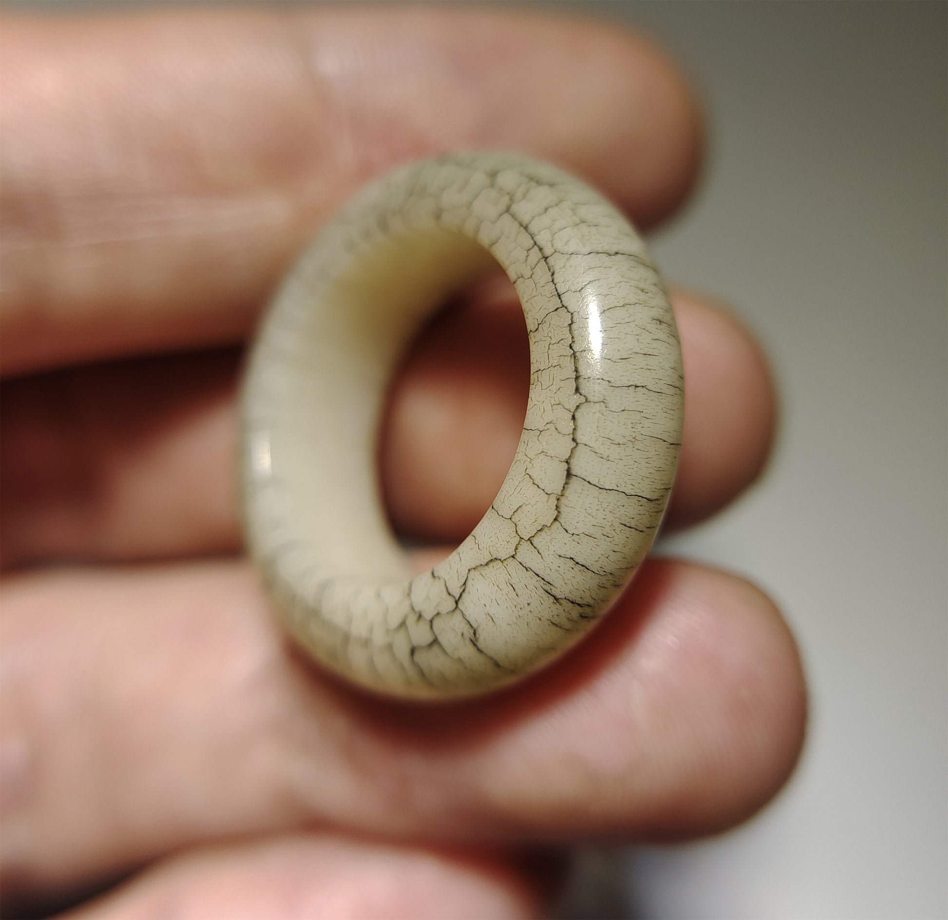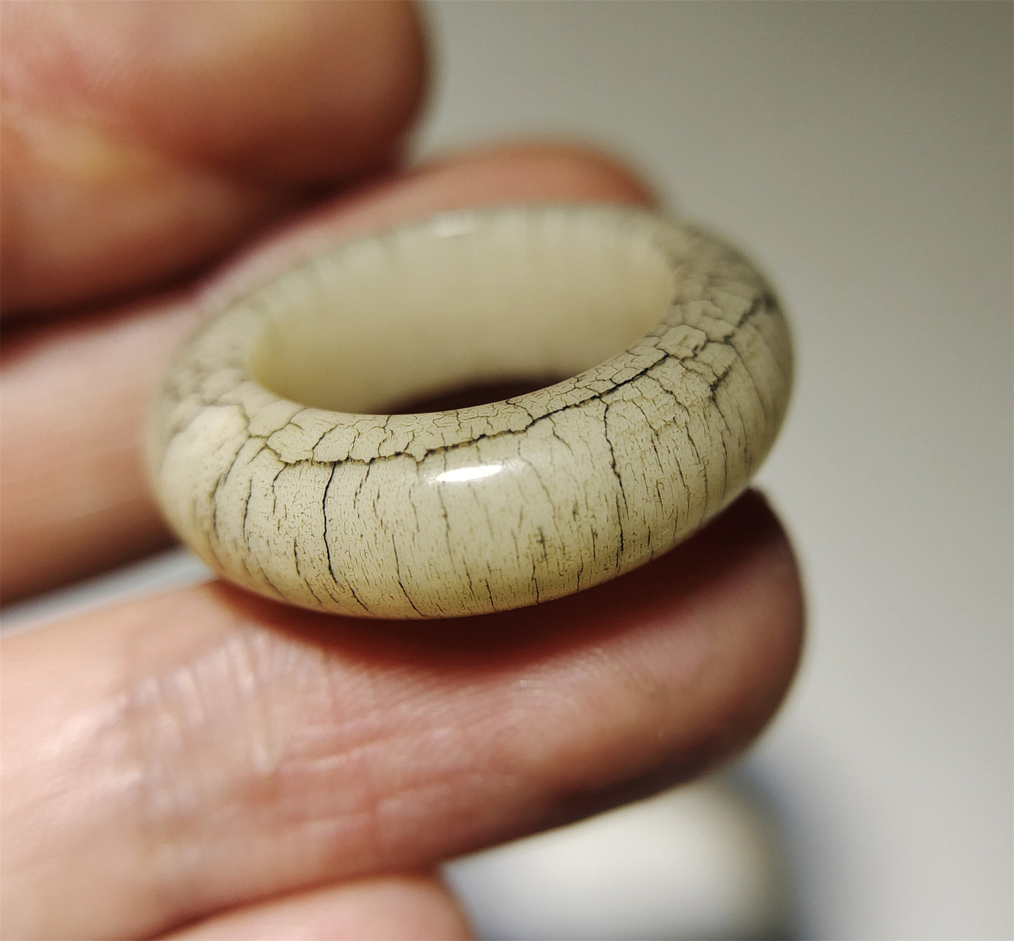 古董西藏牦牛骨扳指玉化面包圈吊坠文玩MRX: This is a genuine old antique tibetan yak bone mala prayer donut amulet, +200 years old, can wear as a necklace pendant or a ring talisman.
