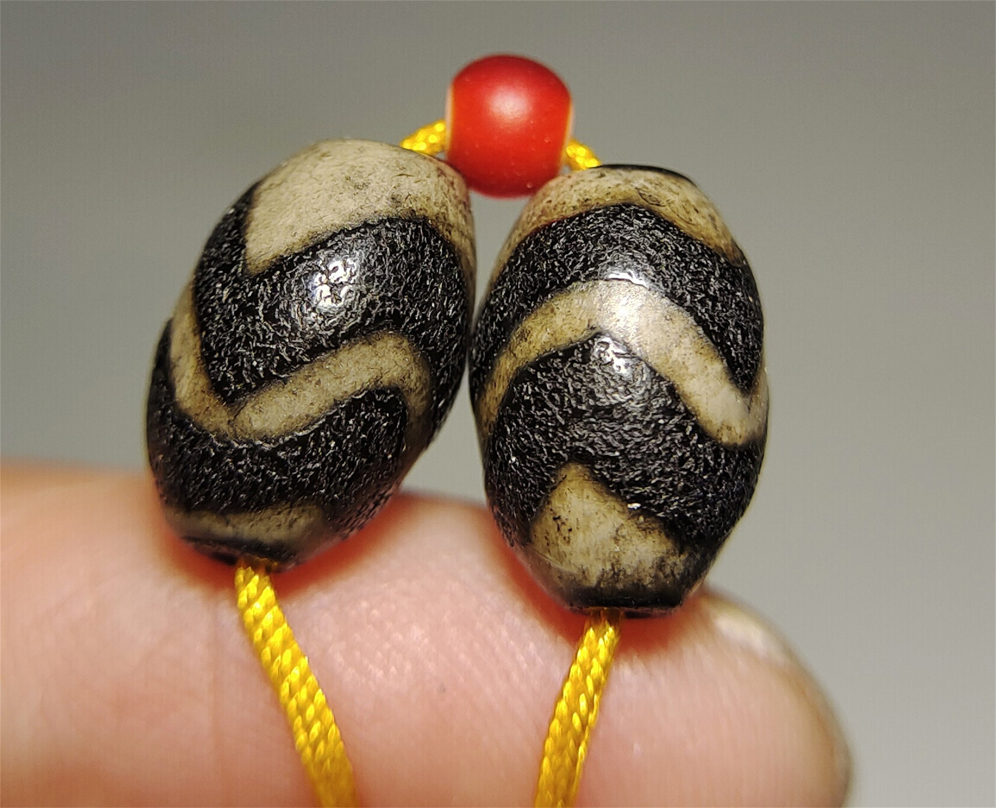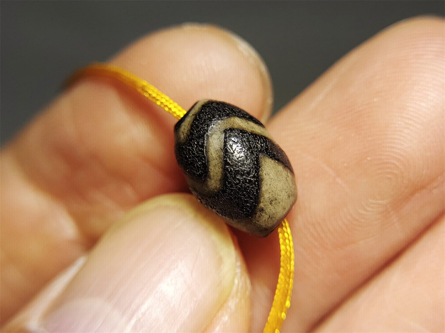Tibetan Ancient Tiger Zigzag Water Wave Dzi Bead Amulet Pure Genuine Himalaya Agate Real