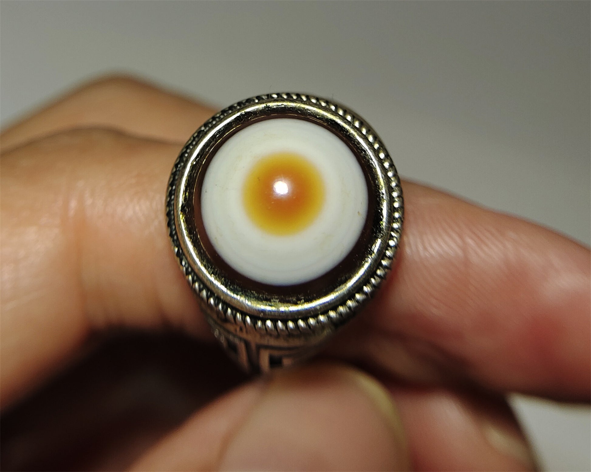 Himalaya LukMik One Eye Dzi Bead Ring Tibetan Old Antique Medicine Amulet Real Genuine Banded Sulemani Agate Natural Old Luk Mik