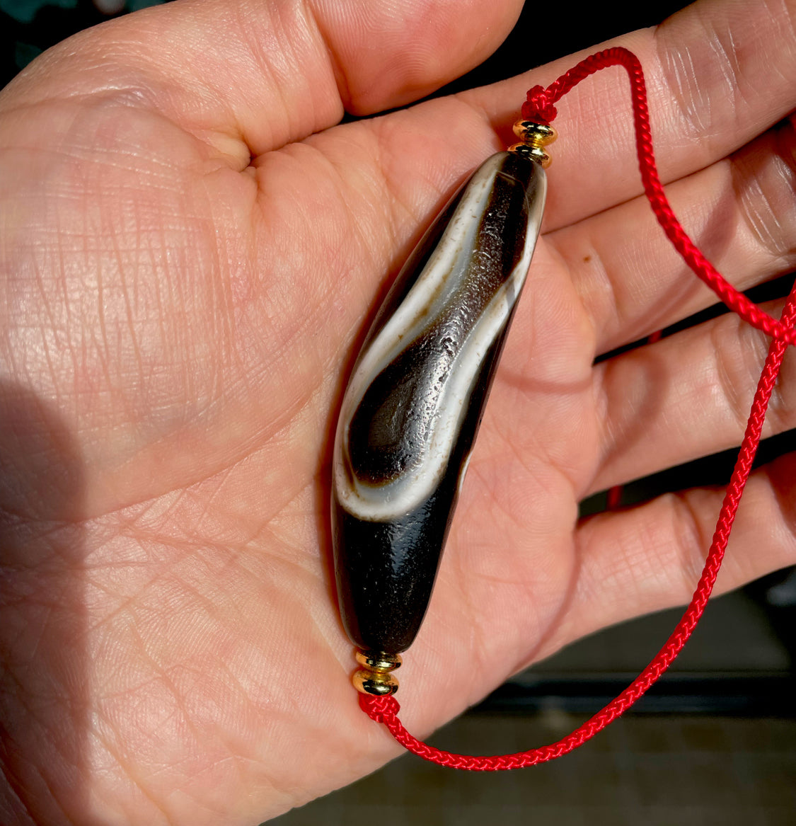 Authenticity guaranteed, 100% genuine ancient dzi bead. In Tibetan Buddhism, dzi beads are believed to be the best talisman both for blessing and protecting its owner.