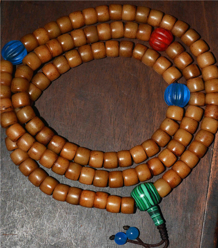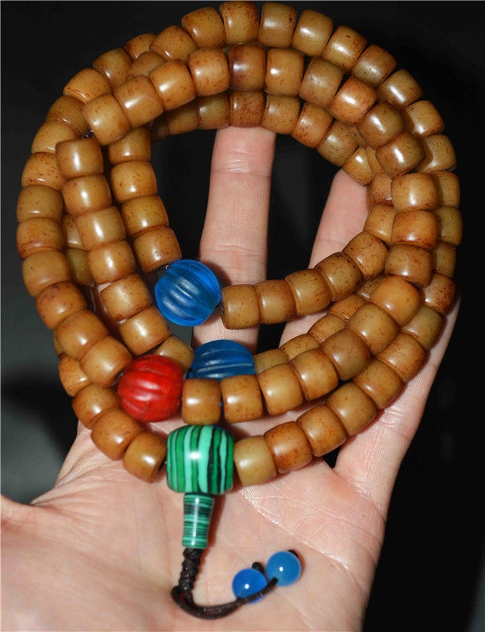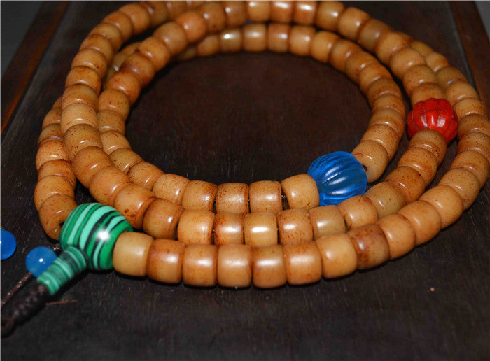 Real Tibetan Old Yak Bone Mala Prayer Beads Bracelet Amulet 108 Antique Tibet Rosary
