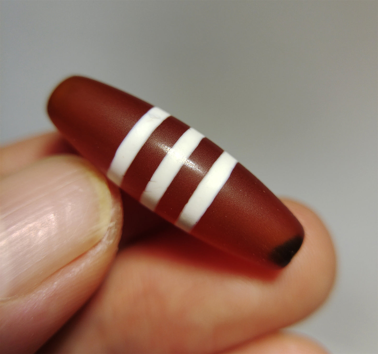 西藏千年至纯三线珠老天珠喜马拉雅MRX: This is a genuine ancient himalaya agate pure three striped dzi bead pendant talisman from tibet, 3 stripes symbol, +2000 years old.