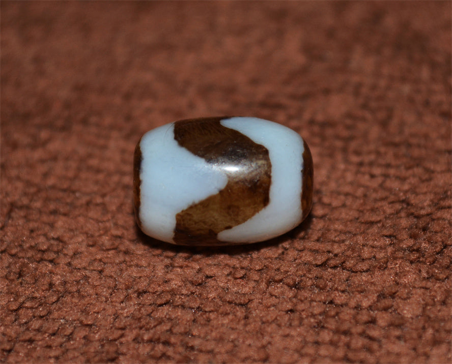 西藏千年至纯达洛虎牙老天珠喜马拉雅MRX: This is a genuine old antique himalaya agate pure water wave dzi bead talisman from tibet, tiger tooth zigzag symbol, we can design it to be a pendant or a bracelet.