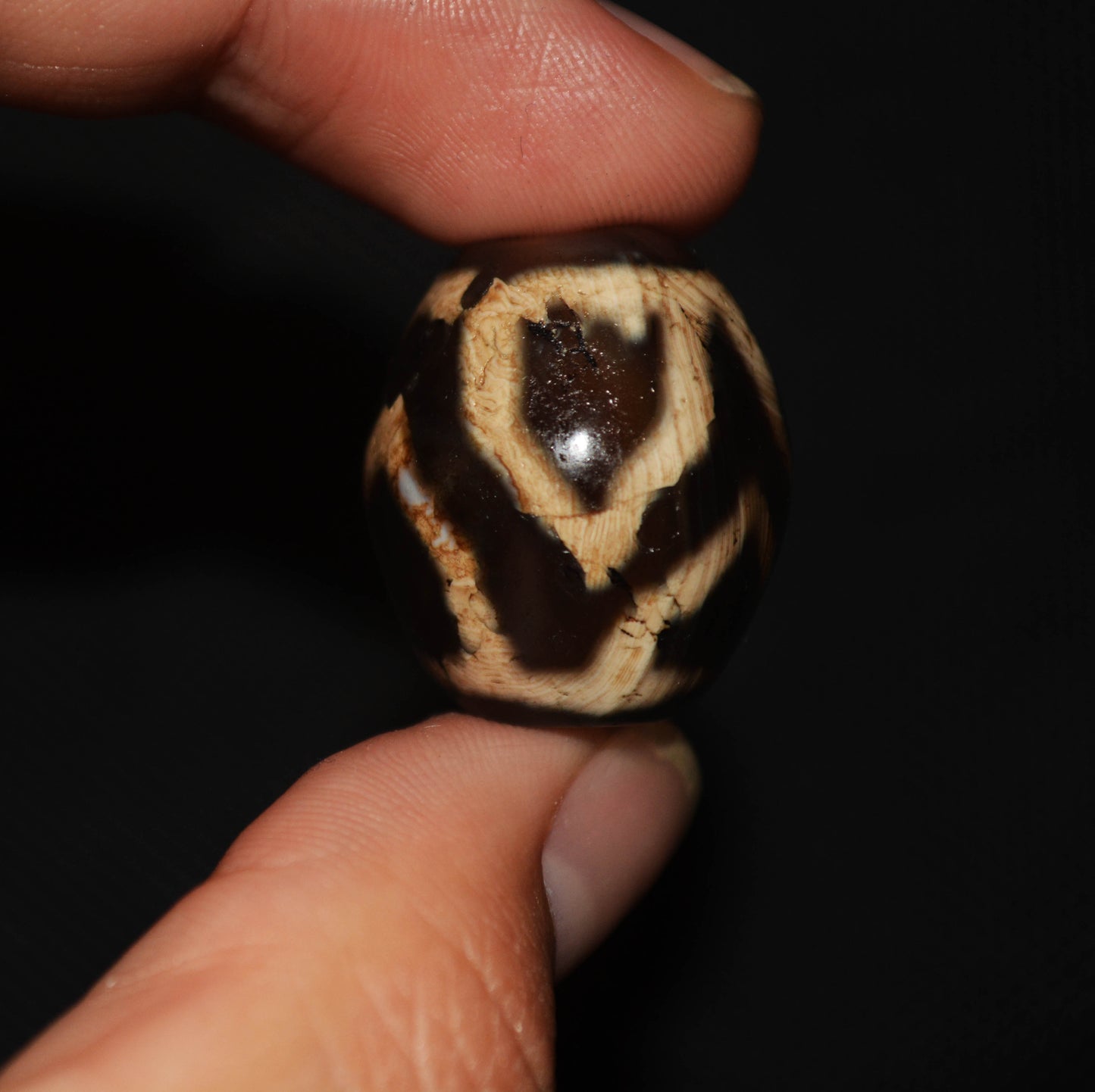 100% genuine himalayan gzi bead amulet, Dated over 2000 years, from the bead surface you can see its waxy patina and evident signs of age due to wearing from generation to generation.