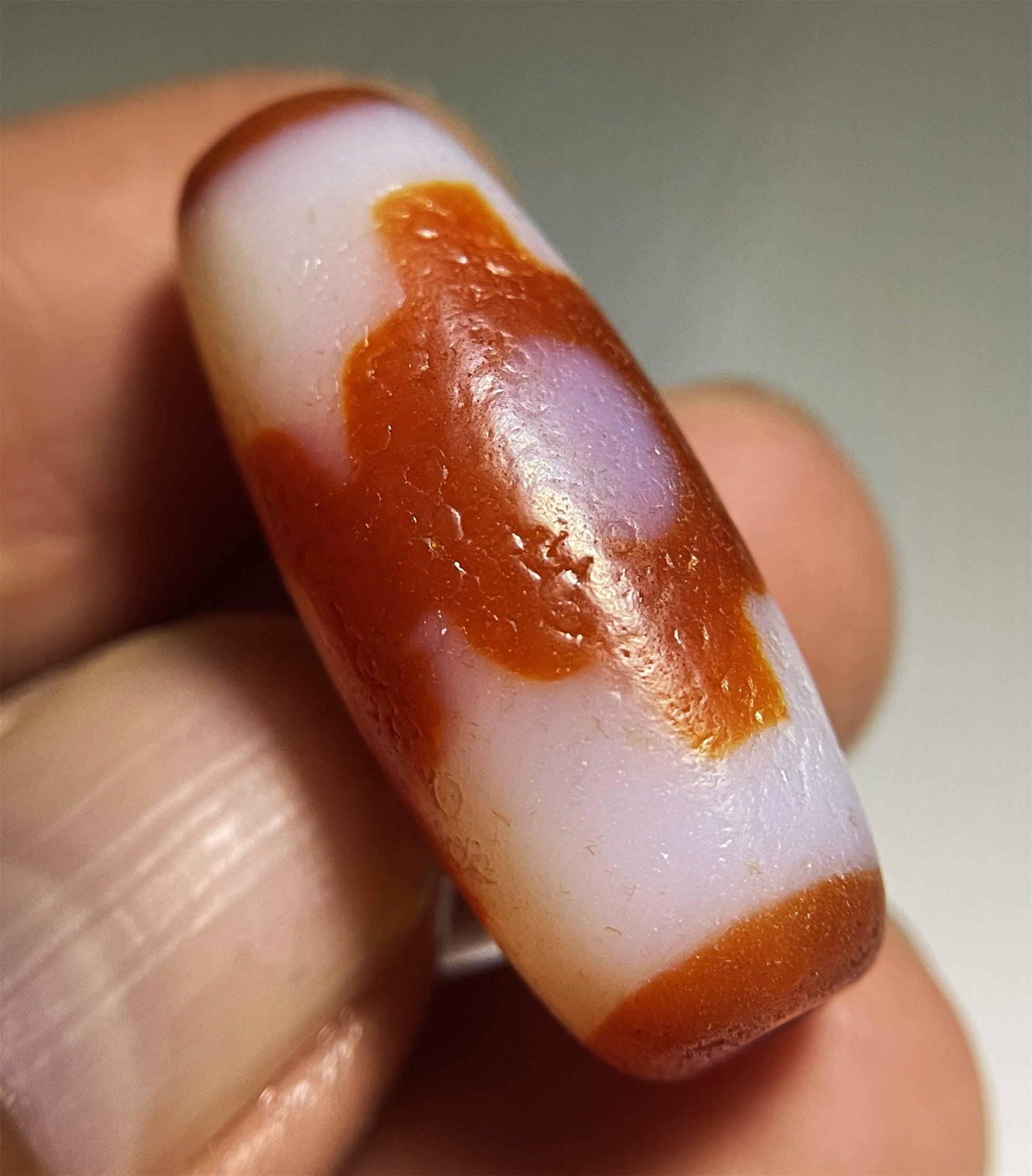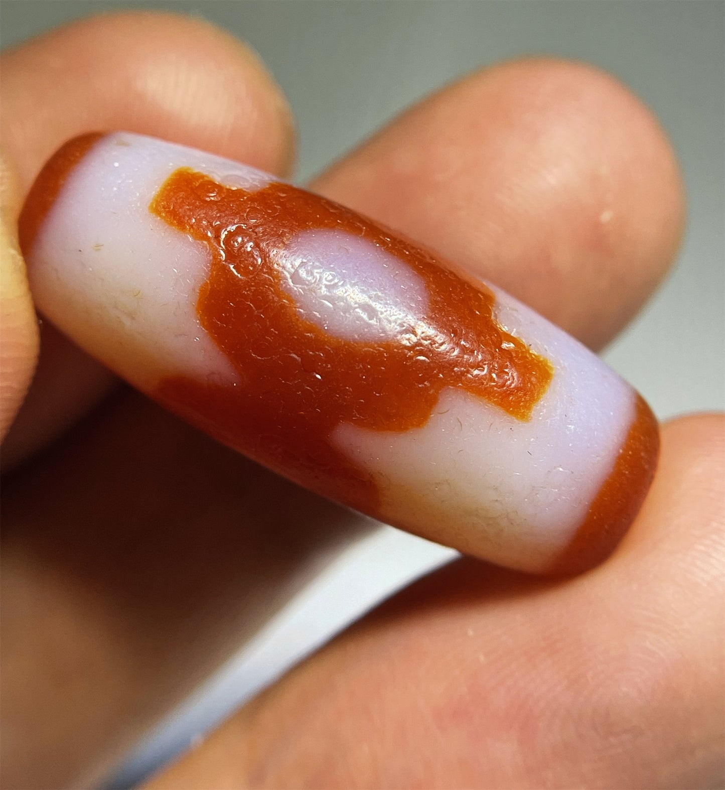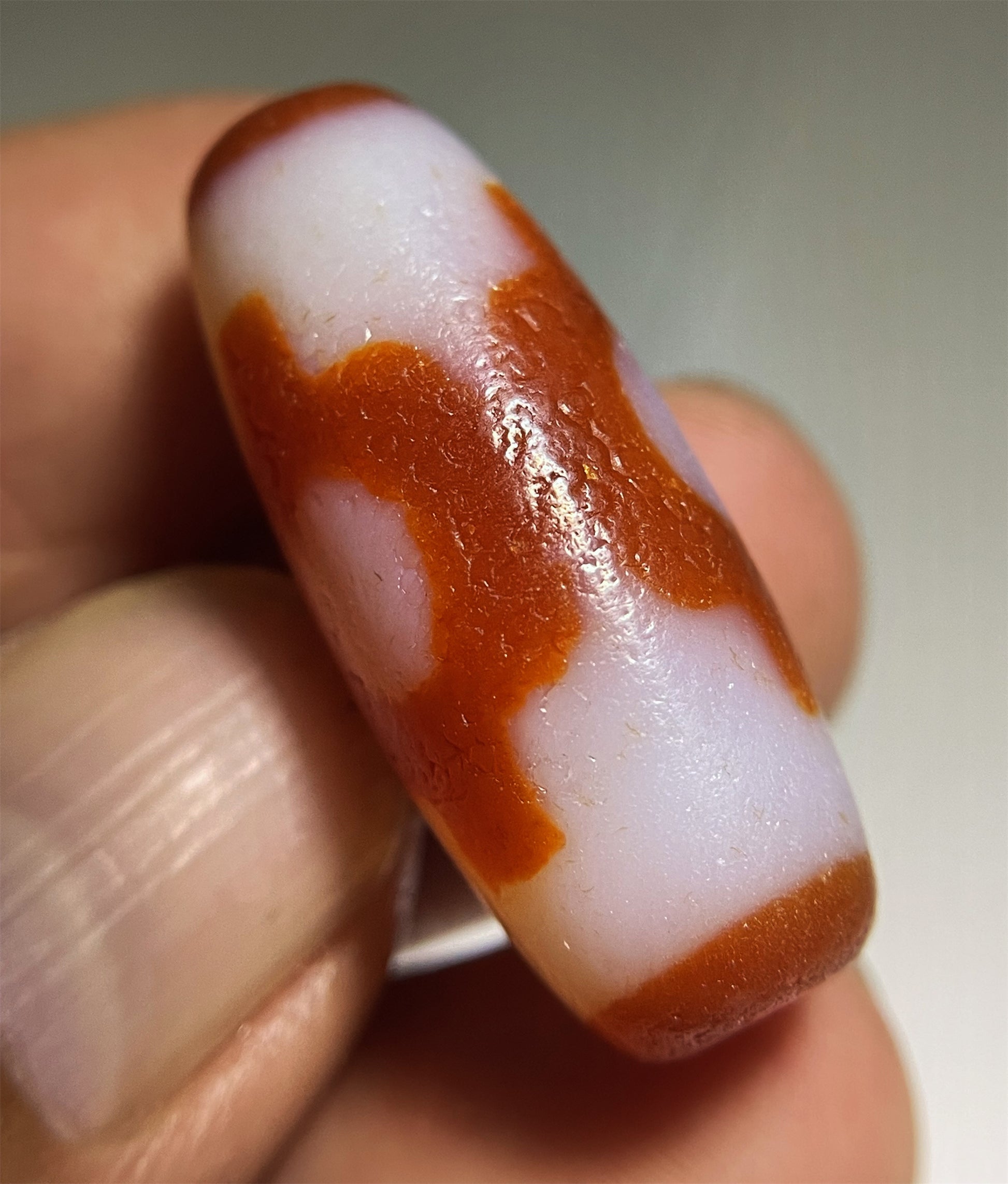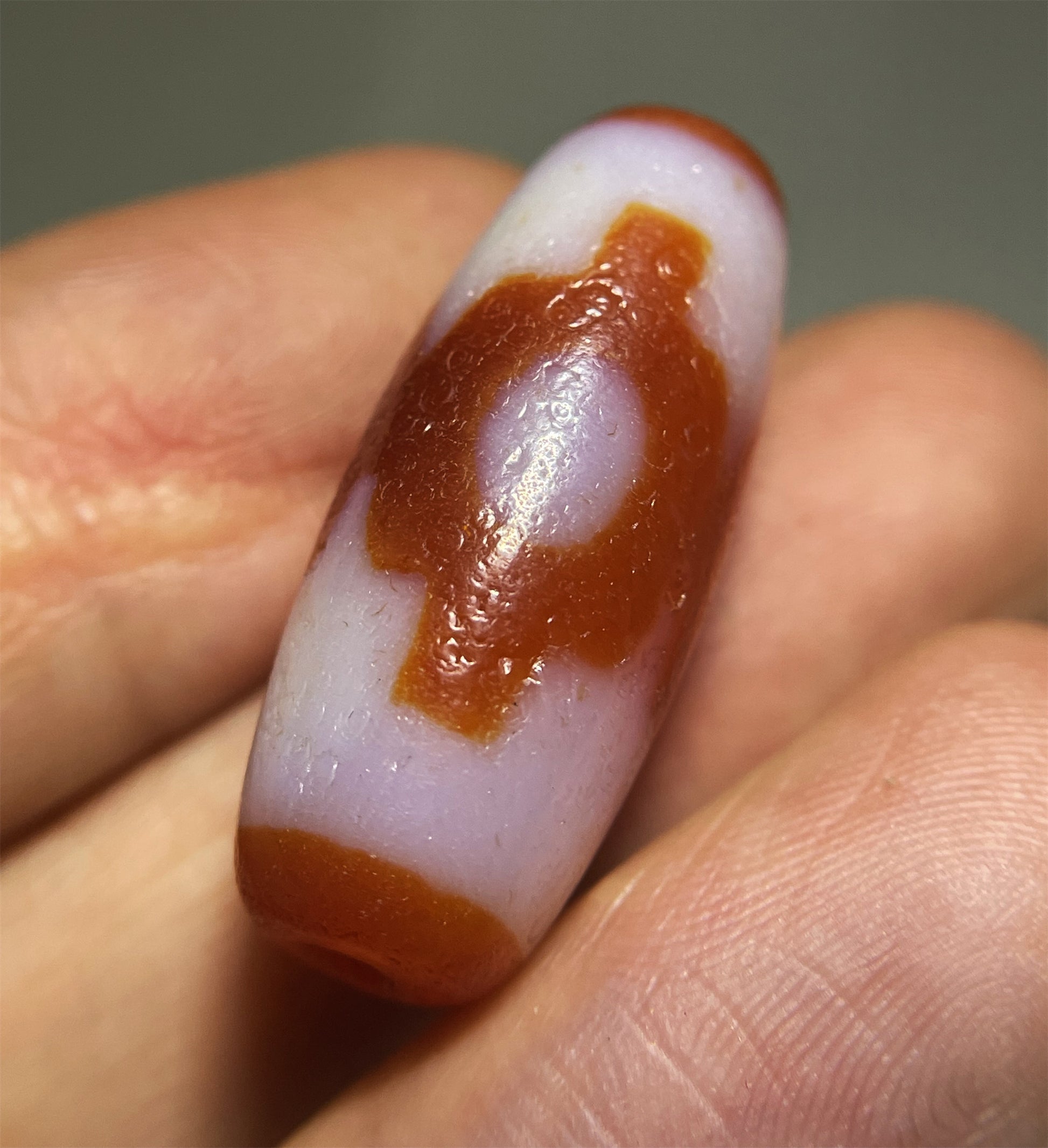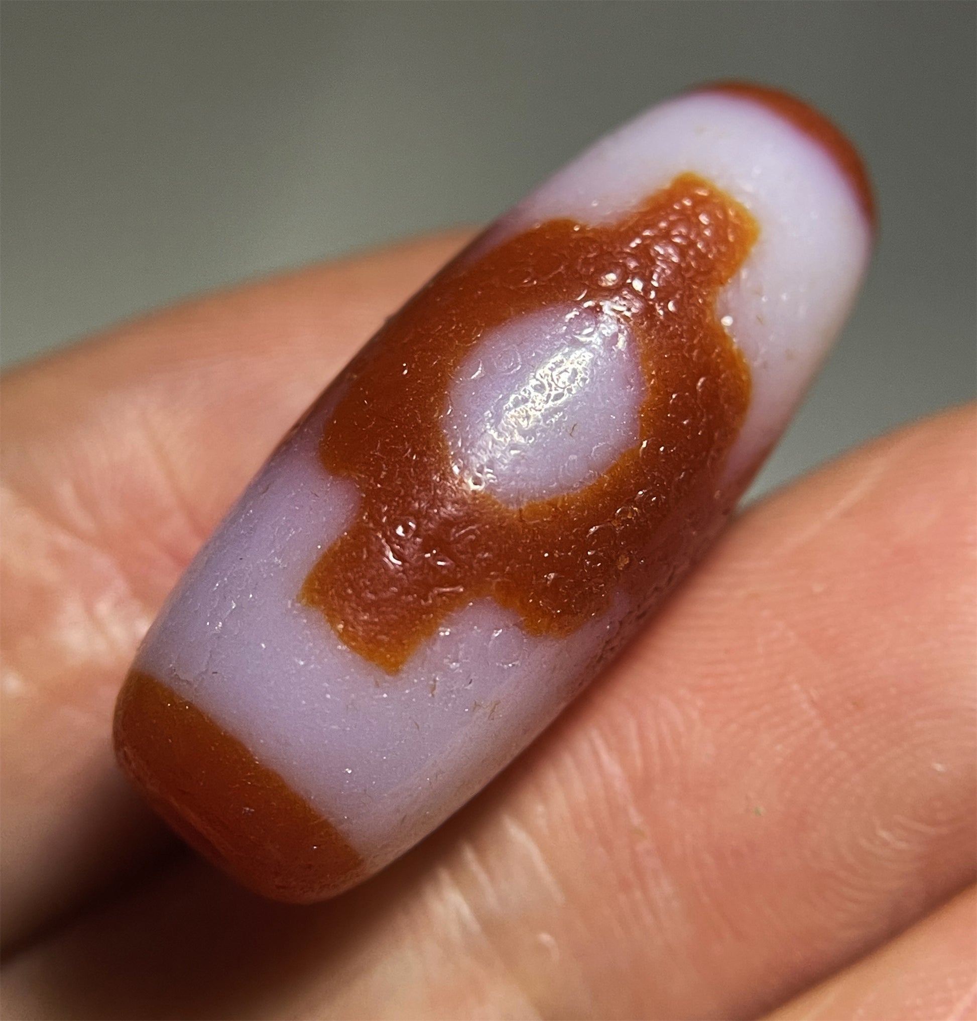 西藏千年至纯嫩色三眼老天珠吊坠喜马拉雅护身符玛瑙藏传手串MRX: This is a real old ancient himalayan agate / carnelian pure three eyes dzi bead pendant amulet talisman from tibetan, 3 eyed motif, +3000 years old, we can design it to be a necklace pendant or a bracelet.
