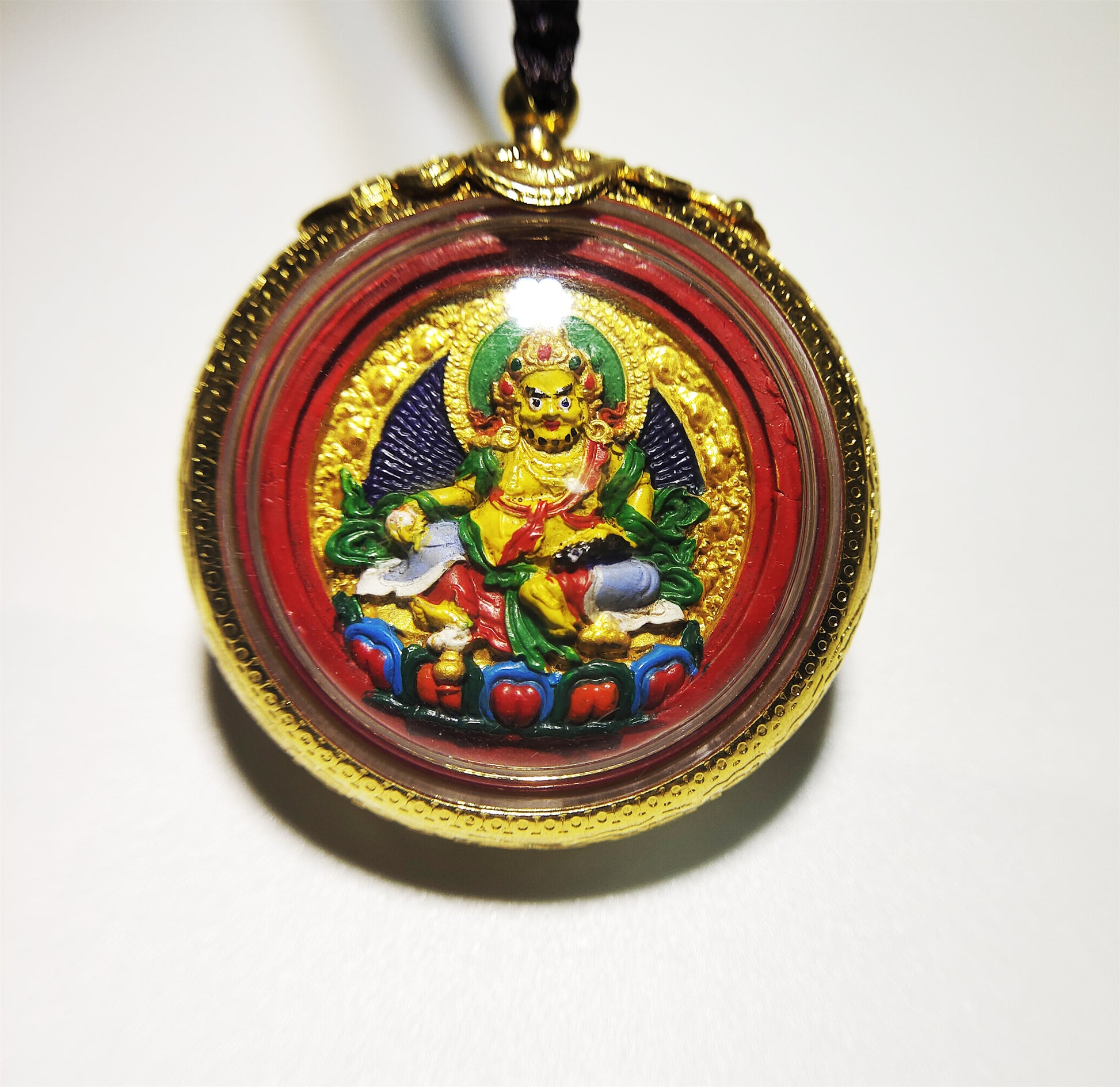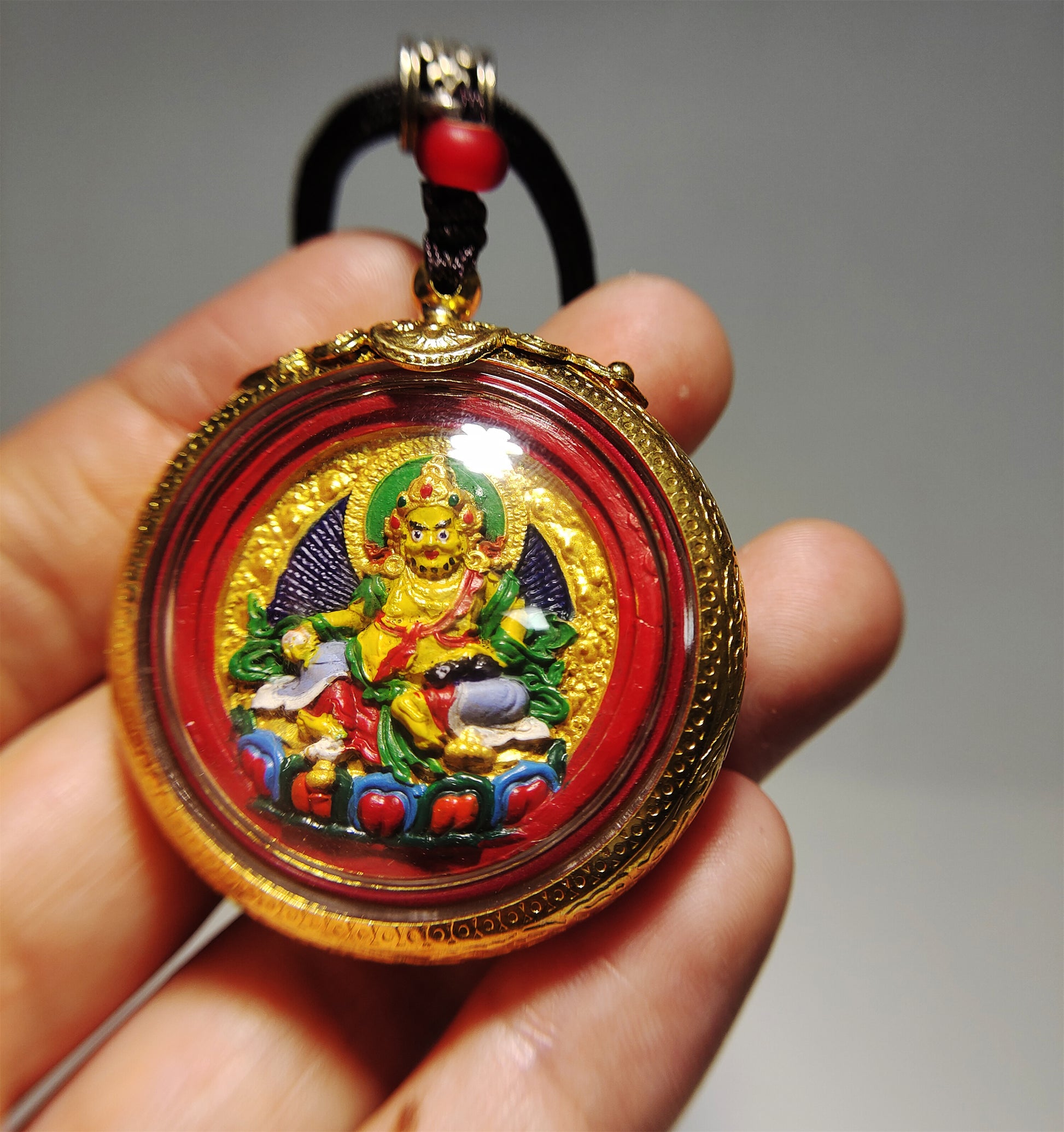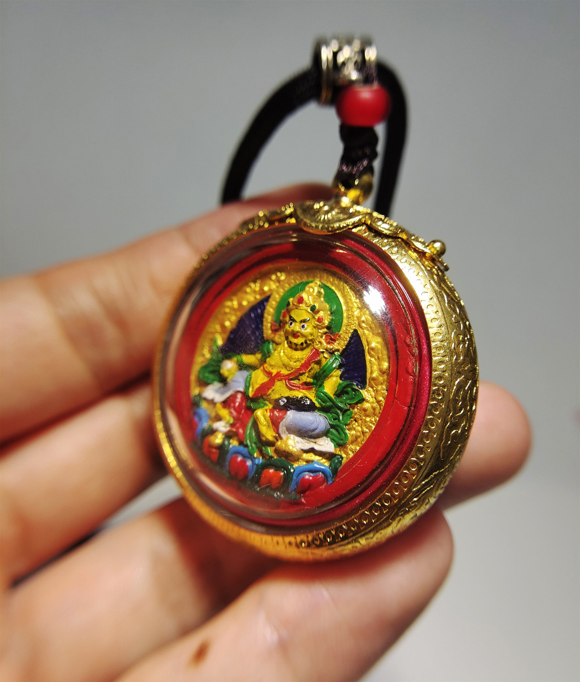 Tibetan Antique Yellow Jambhala Tsha Tsha Gau Prayer Box Pendant Ghau Niche Shrine Himalayan Amulet Genuine Tsa Tsa Talisman