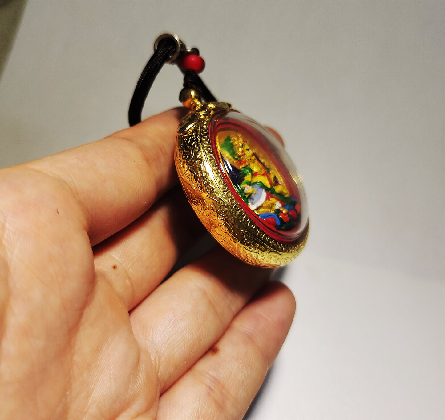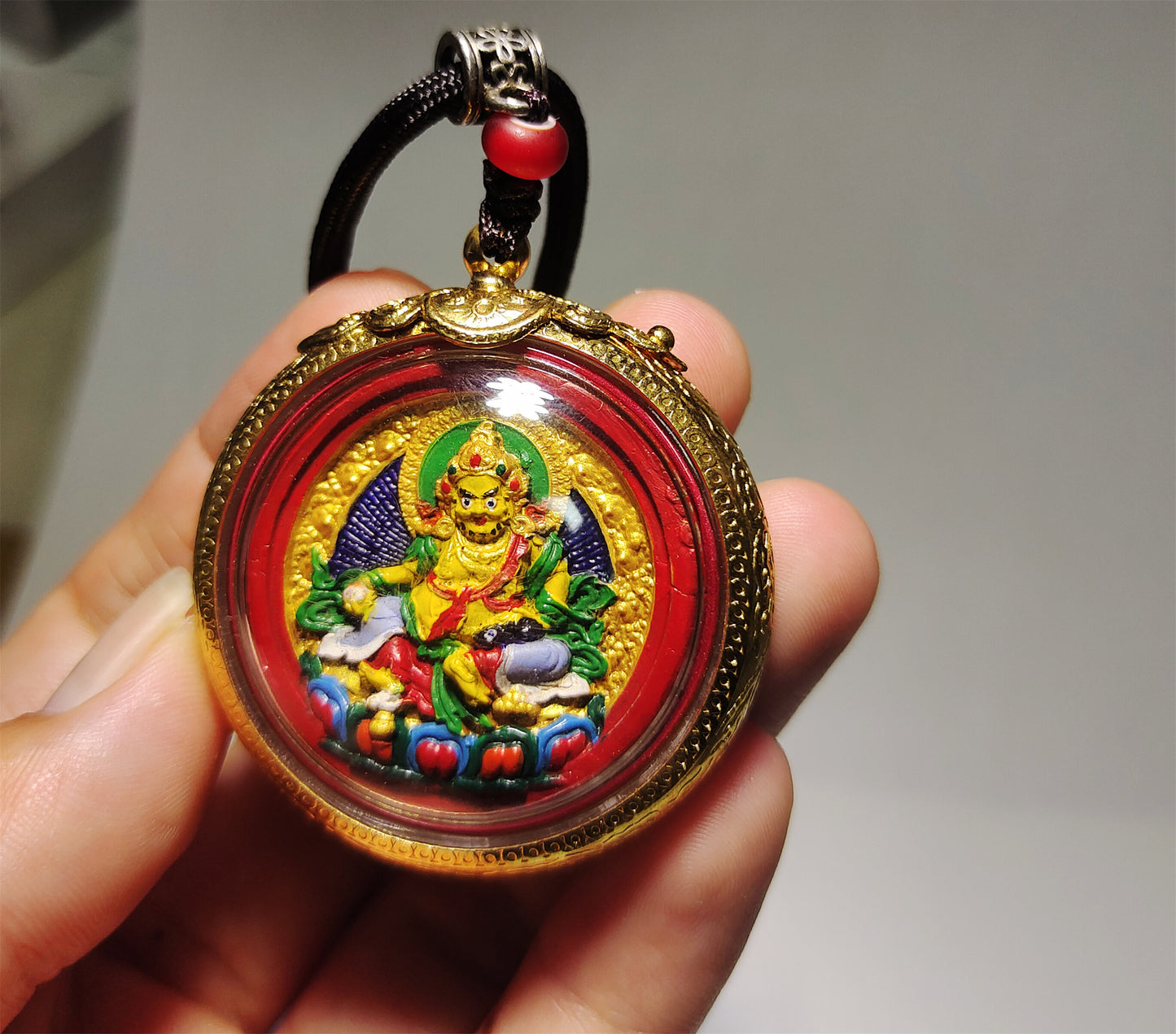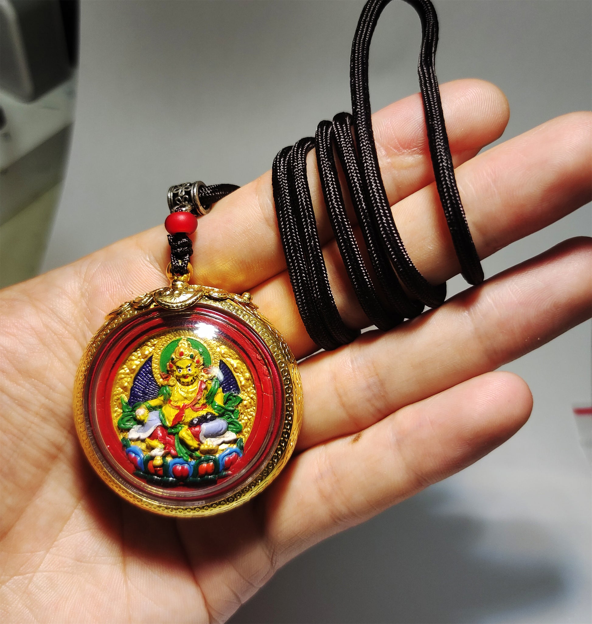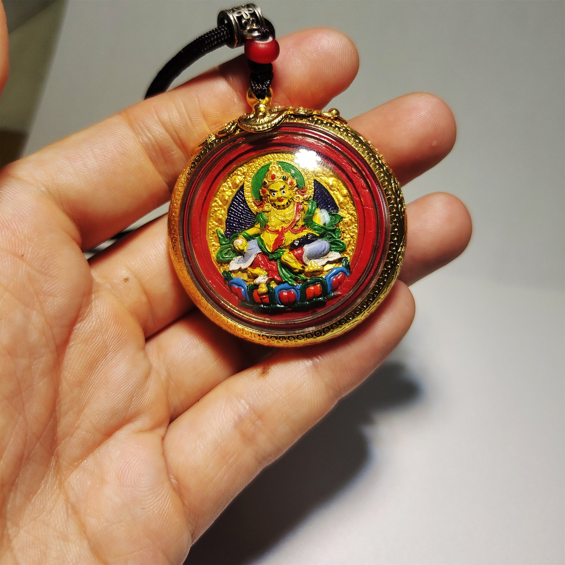 Tibetan Antique Yellow Jambhala Tsha Tsha Gau Prayer Box Pendant Ghau Niche Shrine Himalayan Amulet Genuine Tsa Tsa Talisman