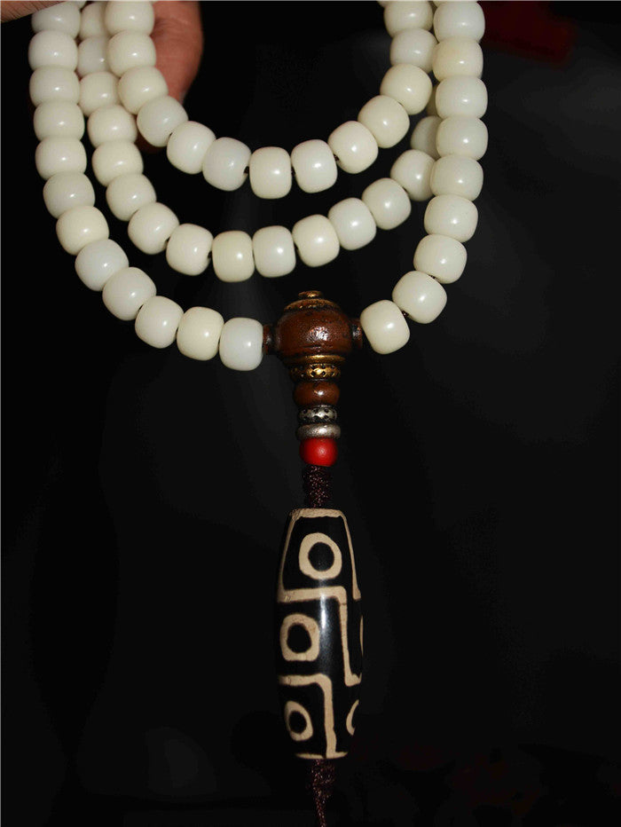 西藏菩提子念珠手串文玩108颗藏传佛珠九眼天珠MRX: This is a genuine tibetan Bodhi seeds mala prayer beads 108 rosary, with a nine eyes dzi bead amulet.