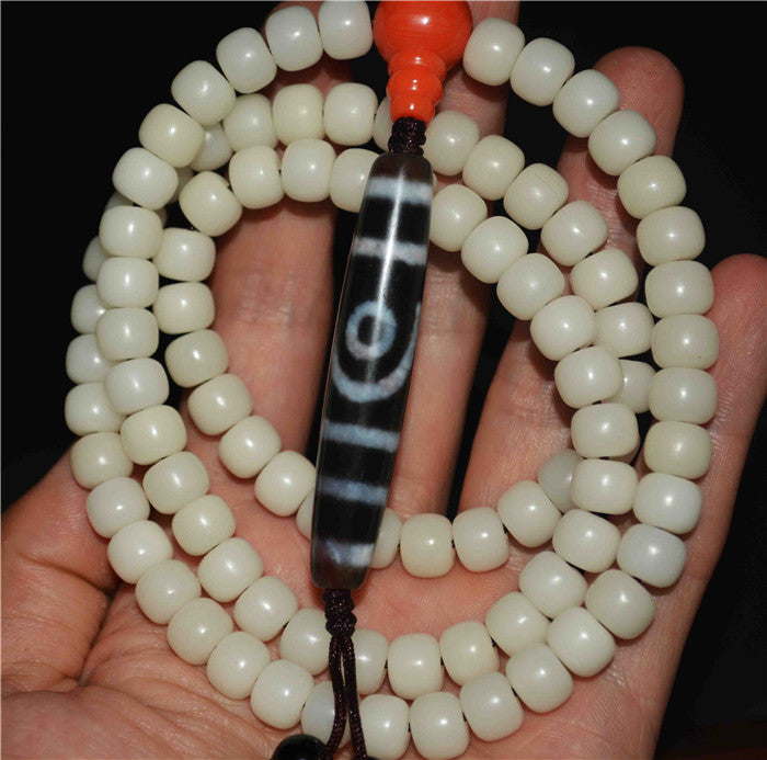 Tibetan Bodhi Seeds Mala Prayer Beads Two Eyes Dzi Bead Amulet 108 Rosary Himalayas