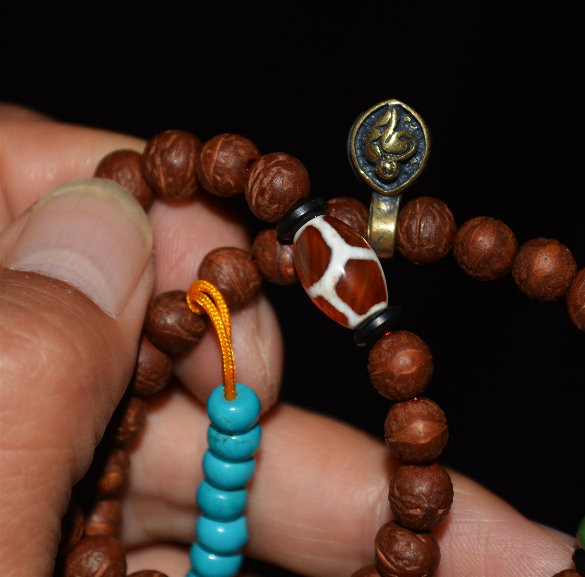 西藏老凤眼菩提子老佛珠念珠手串108颗藏传MRX: This is a genuine tibetan old antique Phoenix Eye Bodhi seeds mala prayer beads rosary, +200 years old, can also wear as a bracelet or a necklace amulet.