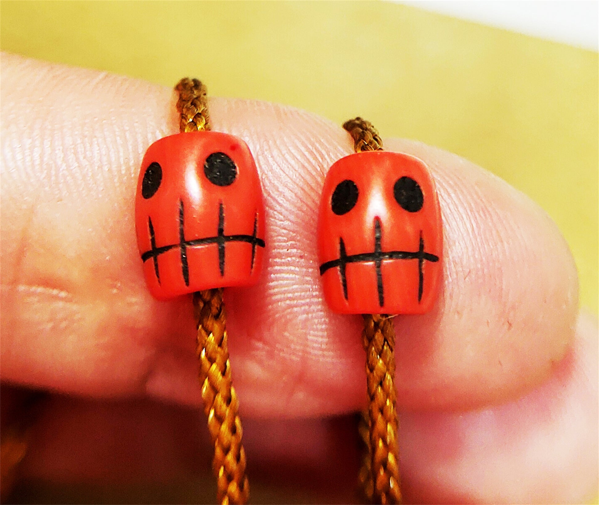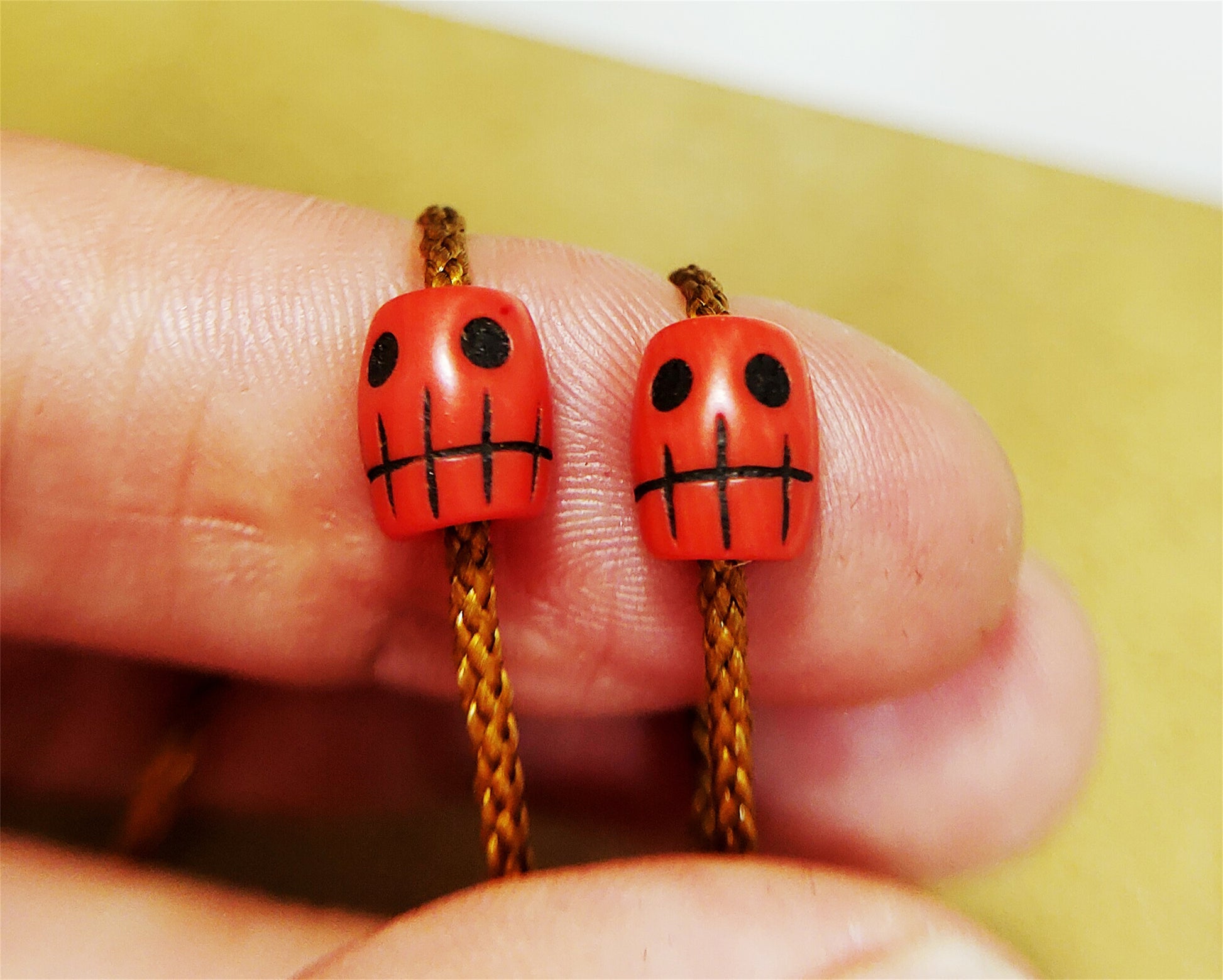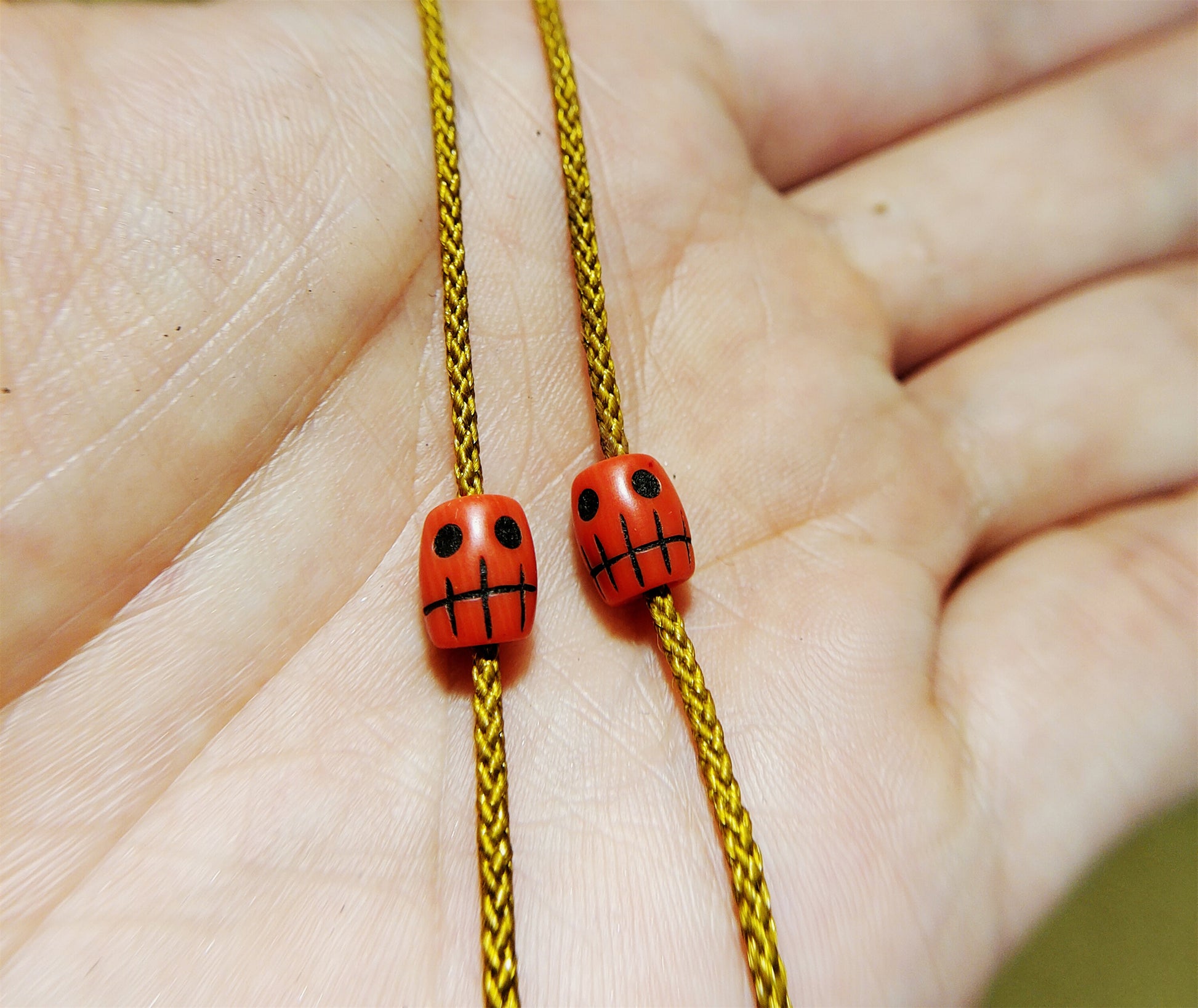 西藏老红雪巴琉璃骷髅头珠子念珠尸陀林佛珠手串MRX: This is a genuine himalaya old antique red Sherpa glass bead prayer amulet from tibet, +100 years old, hand carved skull figure (chitipati shmashana adhipati).
