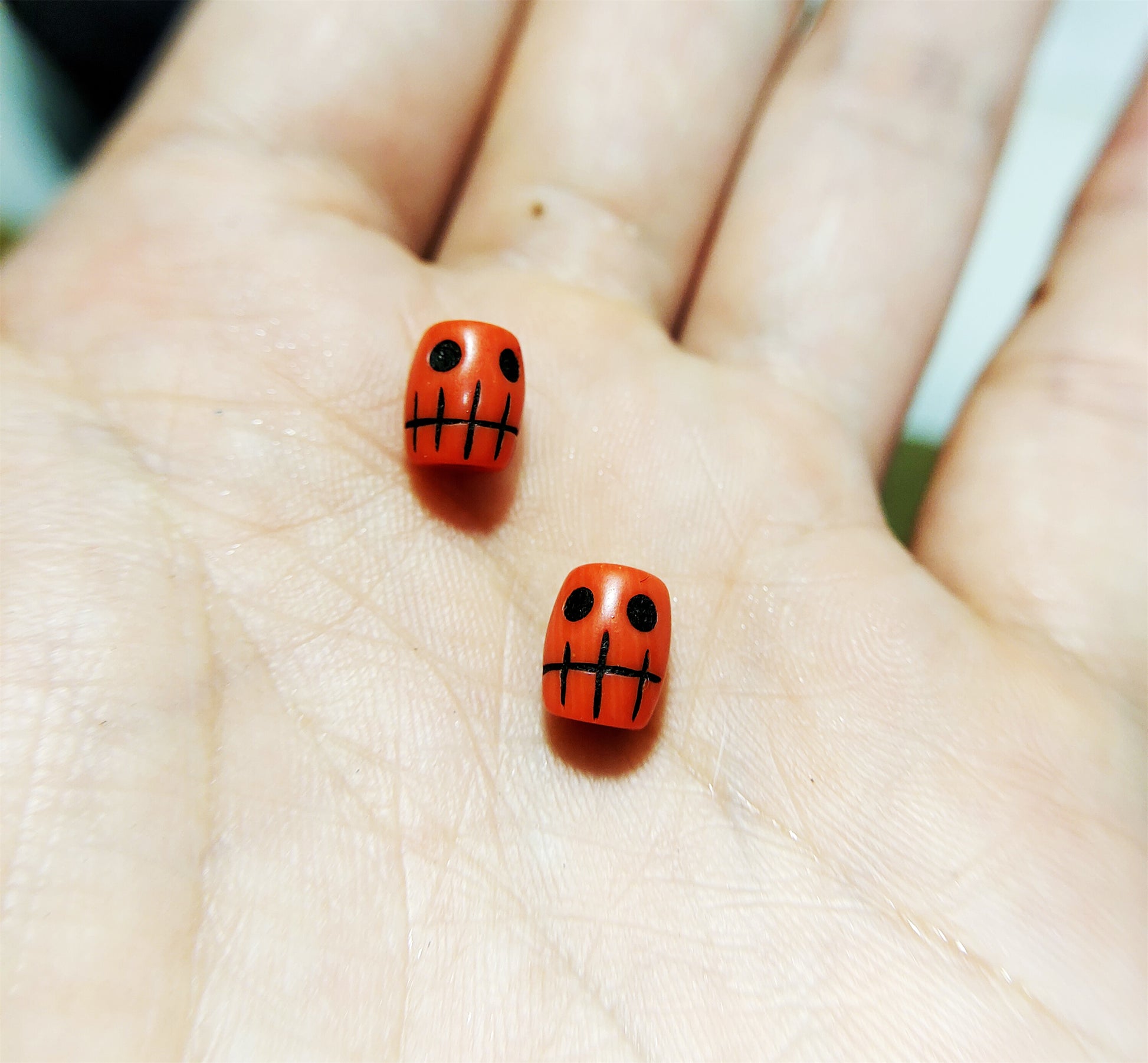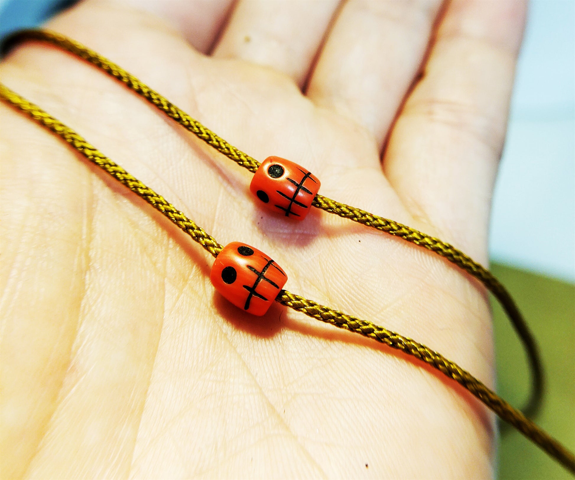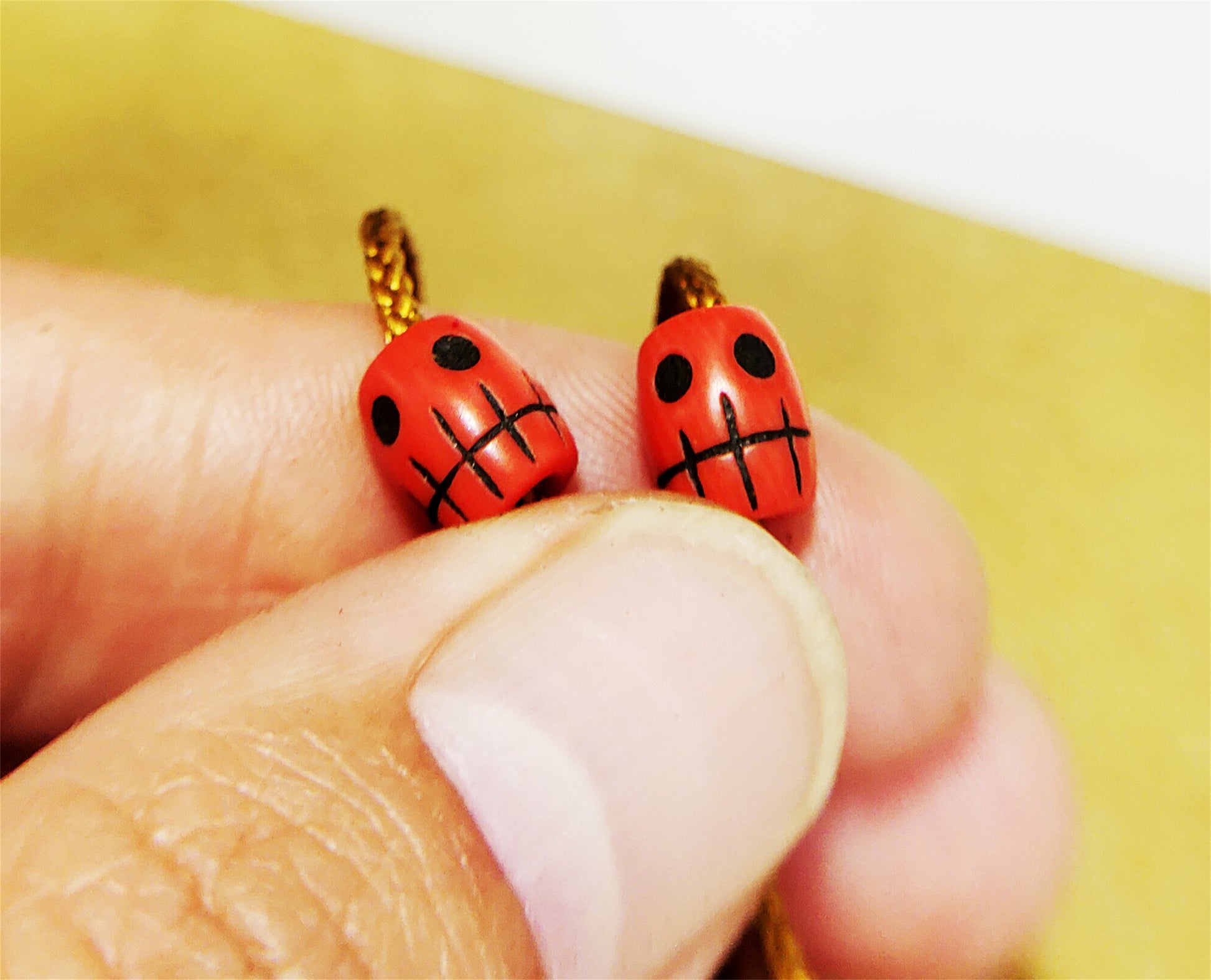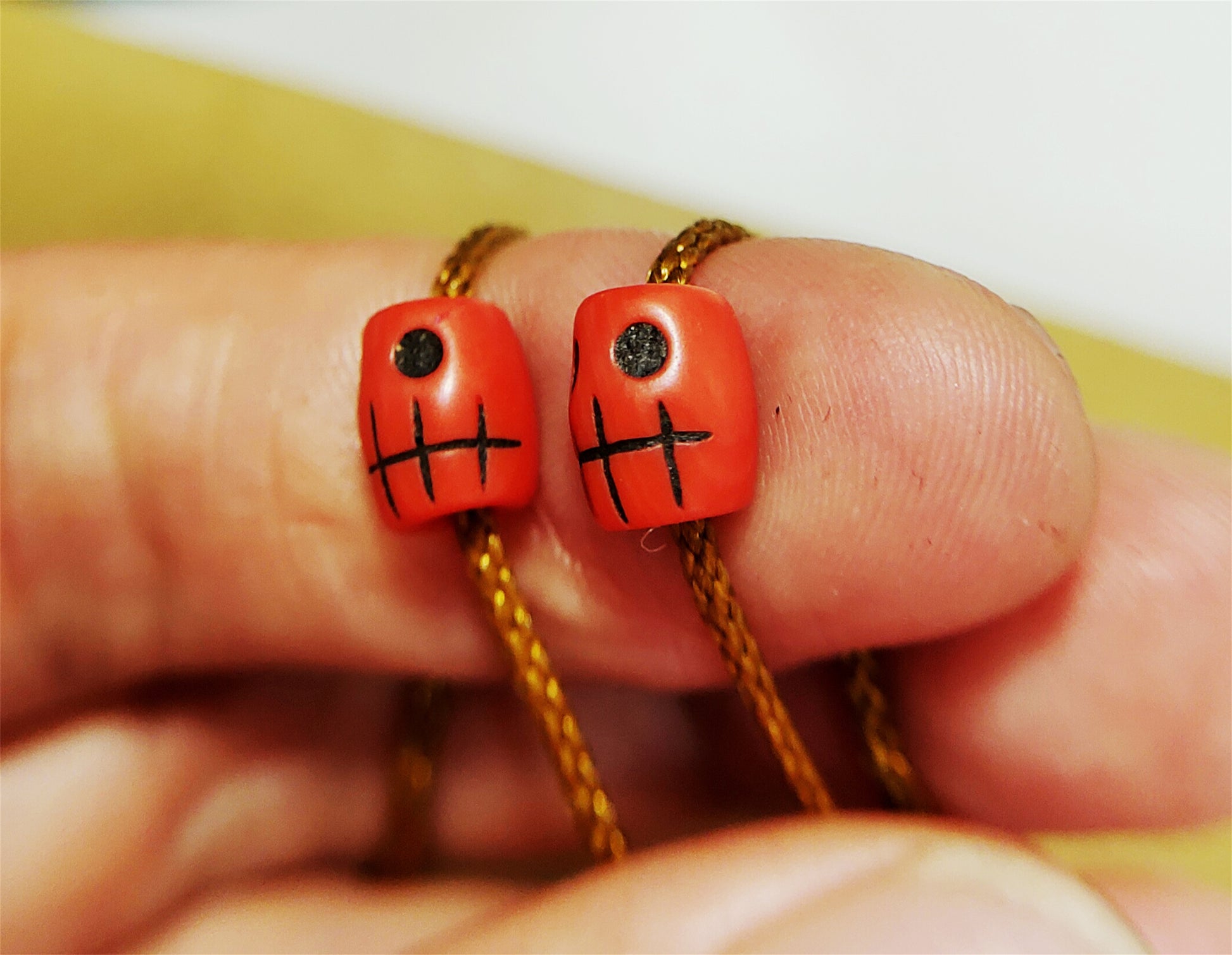 西藏老红雪巴琉璃骷髅头珠子念珠尸陀林佛珠手串MRX: This is a genuine himalaya old antique red Sherpa glass bead prayer amulet from tibet, +100 years old, hand carved skull figure (chitipati shmashana adhipati).
